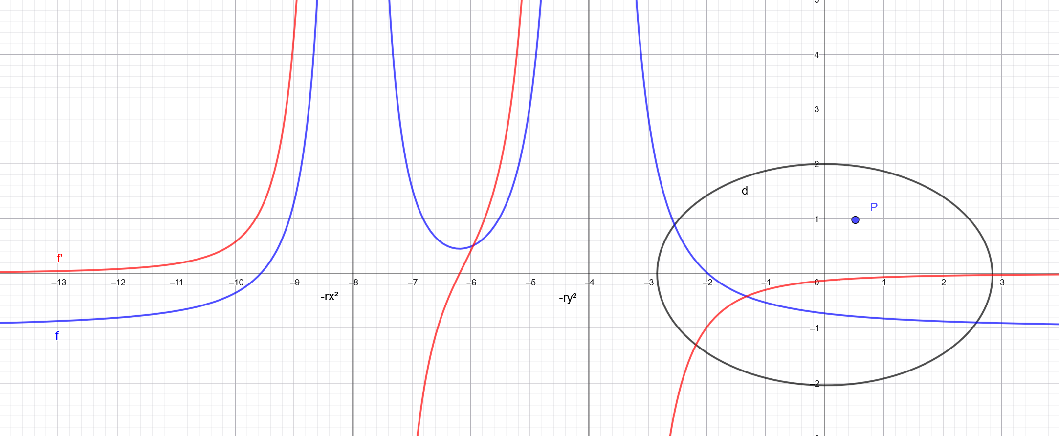 Now this is interesting because this function is negative at -Inf and +Inf and has up to 3 asymptots at -rx², -ry², and -rz²* (here only 2 when represented for a 2D ellipse):