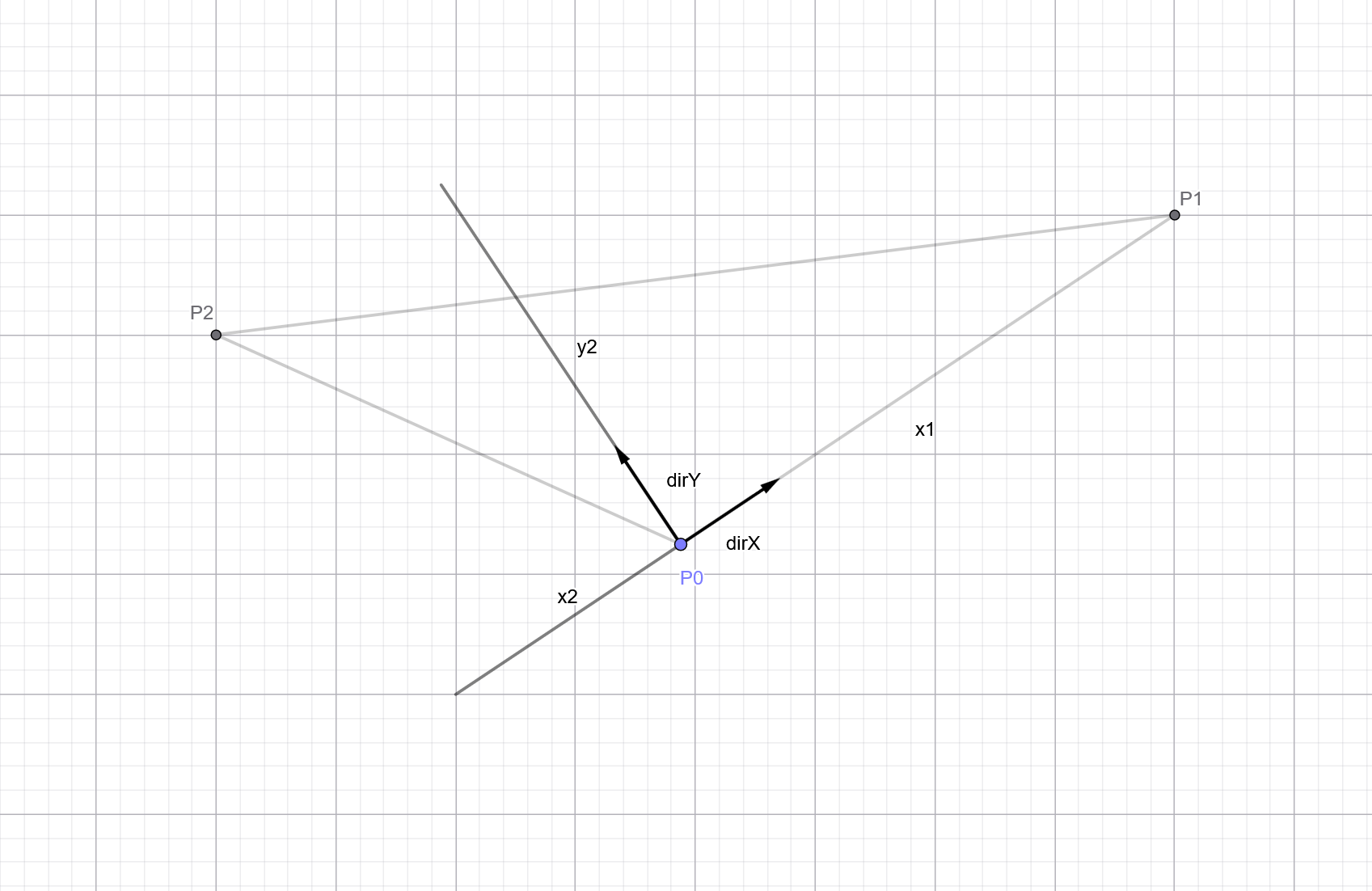 - dirX, the unit vector from p to next point, I was using p1