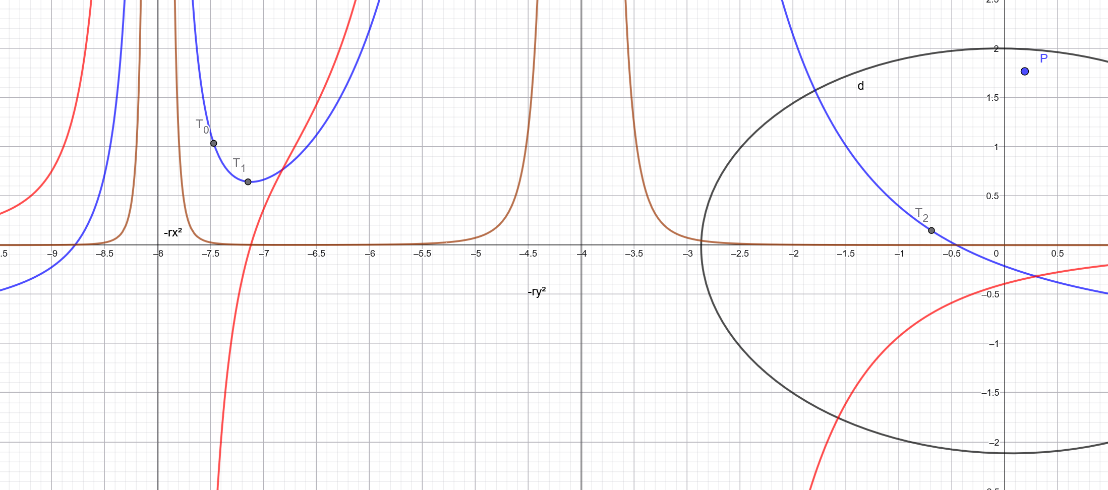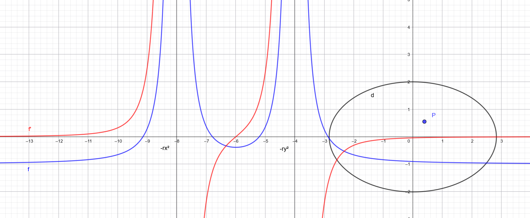 Now this is interesting because this function is negative at -Inf and +Inf and has up to 3 asymptots at -rx², -ry², and -rz²* (here only 2 when represented for a 2D ellipse):